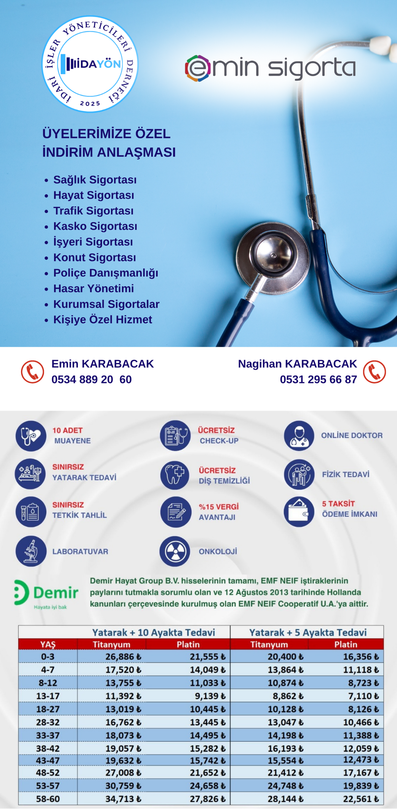 Yukarıdaki iletişim numaraları üzerinden acente yetkilileri ile iletişime geçmeniz gerekmektedir. "İDAYÖN" üyesi olduğunuzu belirtmeniz akabinde hem bu liste hemde alternatif poliçeler ile yardımcı olacaklardır. Herhangi bir sorunuz olması durumunda kurumsal iletişim hattımız üzerinden iletişime geçebilirsiniz.